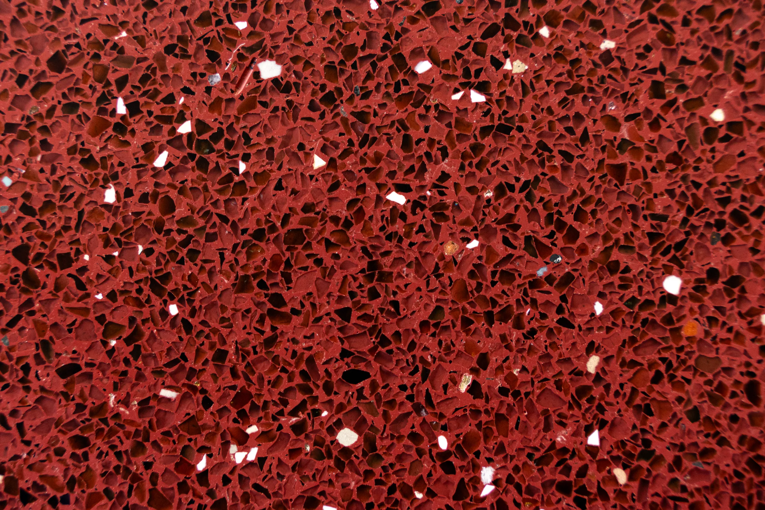 Big Red Roo is a bold terrazzo surface from the Designer Range, defined by its deep red base and dense composition of angular aggregates that create a richly textured finish. The intense red tones are layered with darker fragments and lighter mineral flecks, giving the surface depth and visual movement while maintaining a consistent architectural finish. The colour palette carries subtle reflections of the Australian outback landscape — warm earth, iron-rich soils and sunlit stone — expressed through a contemporary man-made material. This surface is well suited to statement benchtops, feature walls, hospitality spaces and commercial interiors where strong colour and durable performance are part of the design intent.