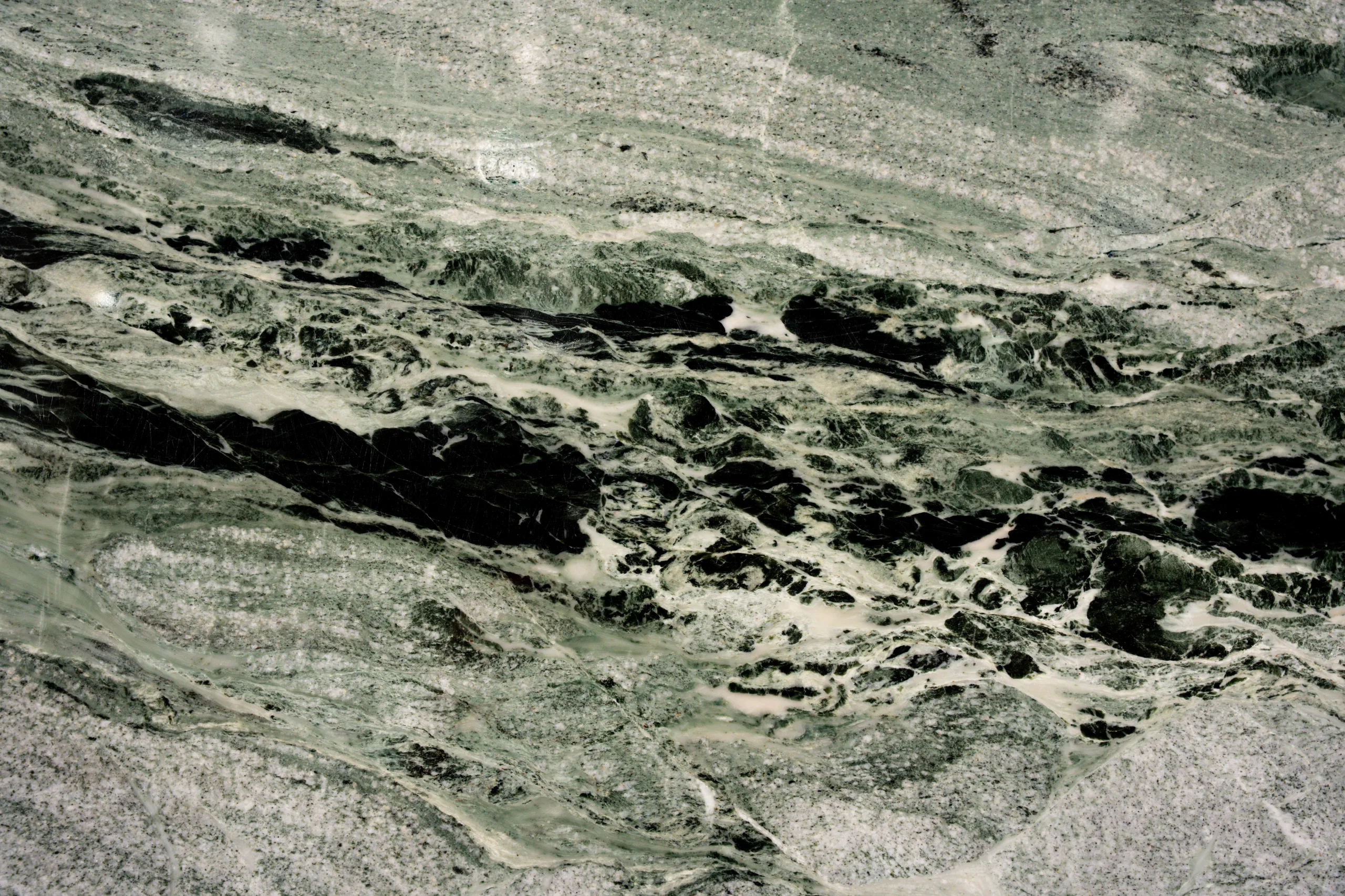 Victoria Green is a dramatic natural marble celebrated for its rich movement and vibrant colour palette. The stone showcases deep forest greens blended with lighter green tones and sweeping white veining that flows dynamically across the surface, creating a sense of depth and natural artistry. This striking contrast gives each slab a bold, organic character, making Victoria Green marble an excellent choice for statement countertops, feature walls, fireplaces, and luxury interior accents where a strong visual impact is desired.